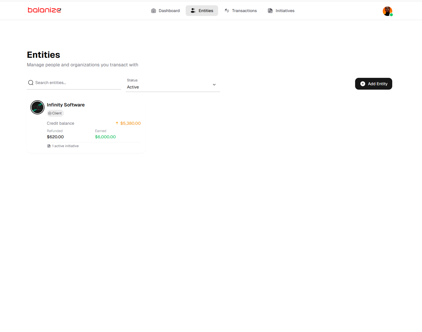 Organize and track all your entities in one place. Add, edit, and monitor financial entities with ease and precision.
